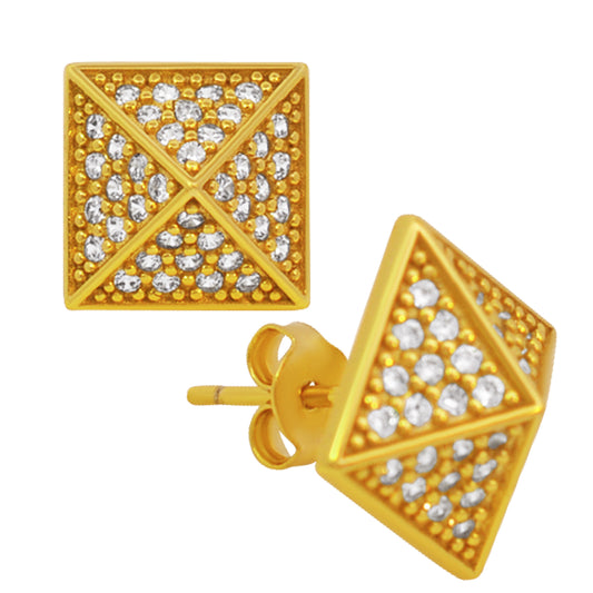 925 Sterling Silver Pyramid with Cubic Zirconia Earrings Stud Push Backing