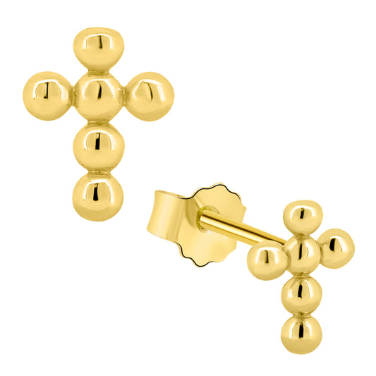 925 Sterling Silver Imitation Beaded Cross Design Earring Push Backing