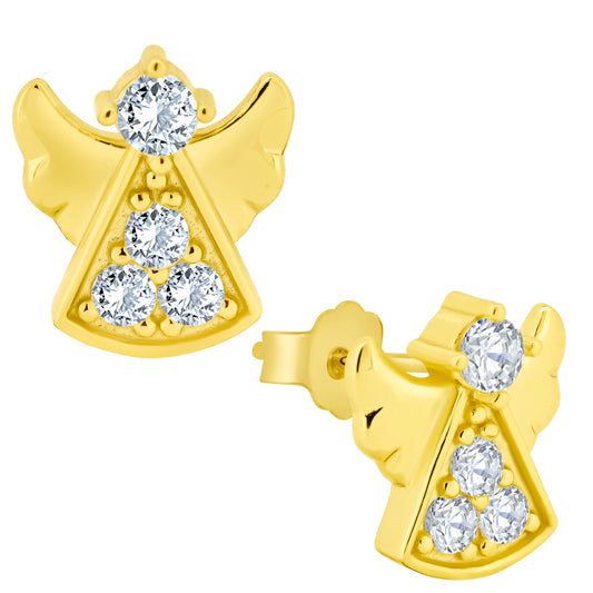 925 Sterling Silver Angel Design with Cubic Zirconia Design Earring Push Backing