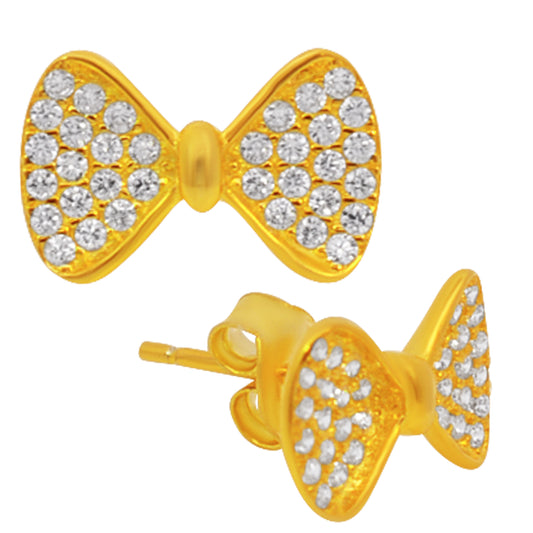925 Sterling Silver Bow Tie Design with Cubic Zirconia Earring Push Backing