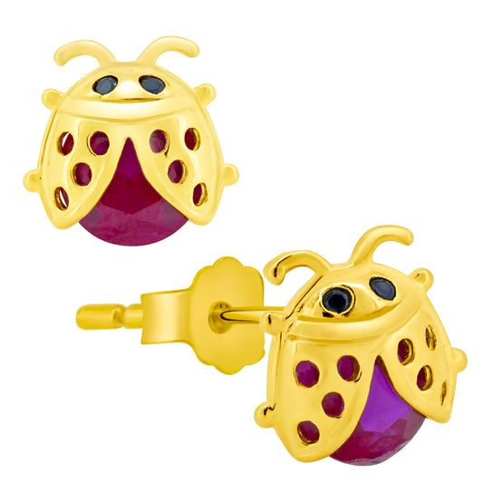 925 Sterling Silver Lady Bug with Fuchsia Cubic Zirconia Earrings Stud Push Backing