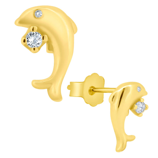925 Sterling Silver Dolphin with Cubic Zirconia Earrings Stud Push Backing