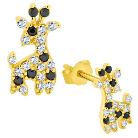 925 Sterling Silver Giraffe Design with Cubic Zirconia Earrings Stud Push Backing