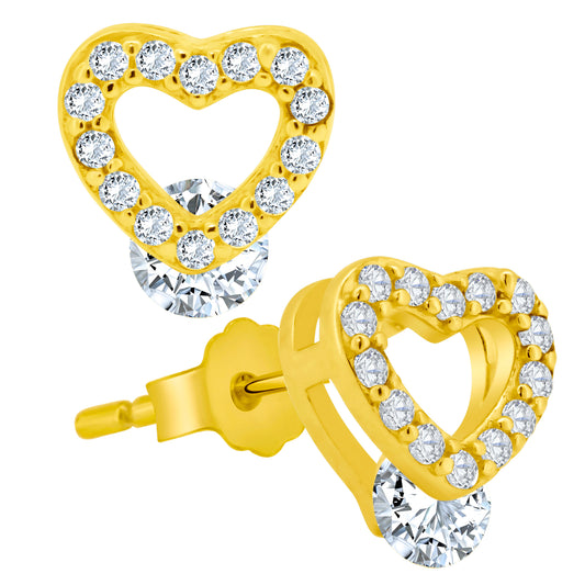 925 Sterling Silver Heart Design with Cubic Zirconia Earrings Stud Push Backing