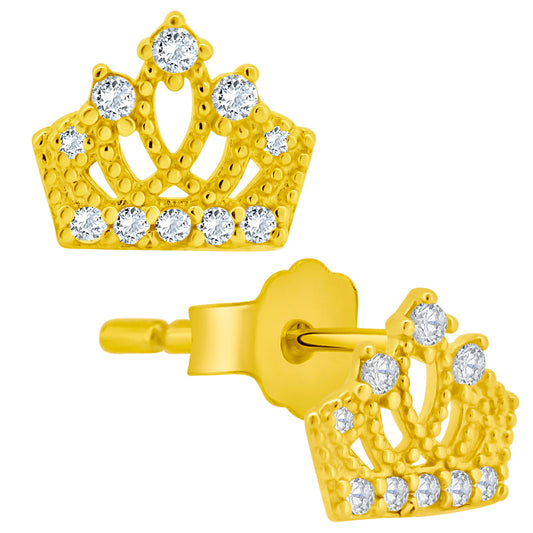 925 Sterling Silver Crown Design with Cubic Zirconia Earrings Stud Push Backing