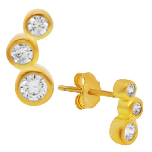 925 Sterling Silver 3 Bezel Round Design with Cubic Zirconia Earrings Stud Push Backing