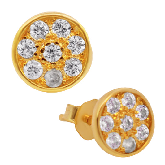 925 Sterling Silver 9mm Round with Cubic Zirconia Earrings Stud Push Backing