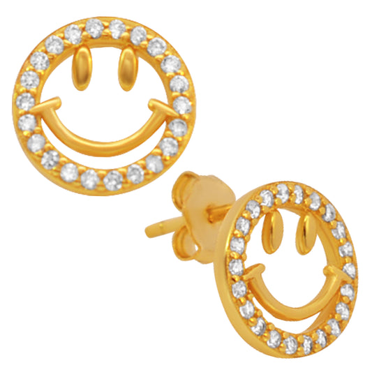 925 Sterling Silver 9mm Smile Round with Cubic Zirconia Earrings Stud Push Backing