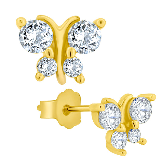 925 Sterling Silver Butterfly Design with Cubic Zirconia Earrings Stud Push Backing