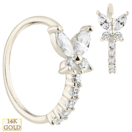 14K Solid Gold Butterfly Design with line of Multi Zircon Nose Hoop
