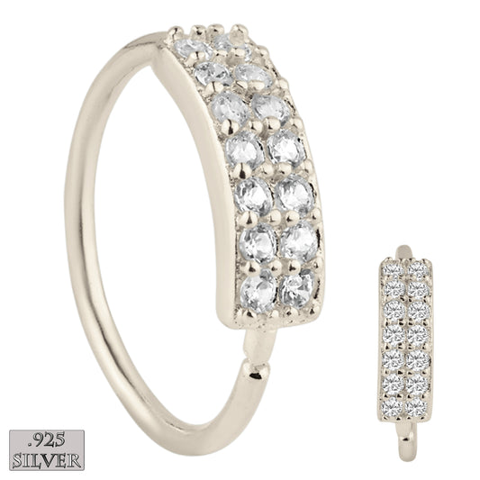 925 Sterling Silver 22g Thickness Double Layer CZ Prong Set Hoops Piercing