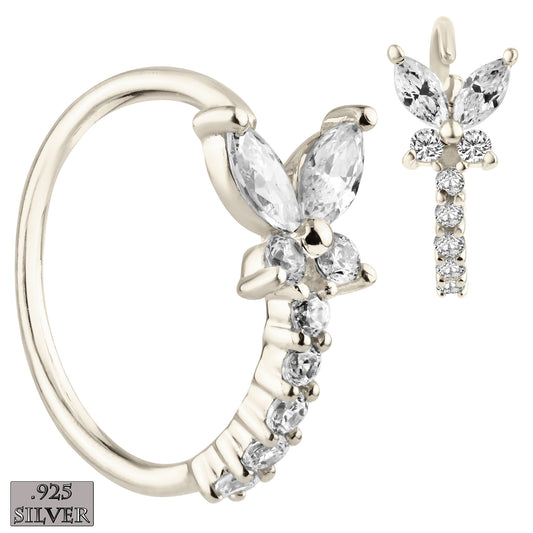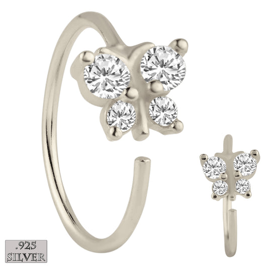 925 Sterling Silver Butterfly with 5 Zircon Line Nose Hoop