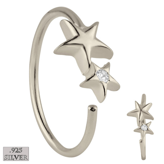 925 Sterling Silver Double Star Design Nose Hoops 22g Thick 8mm wide