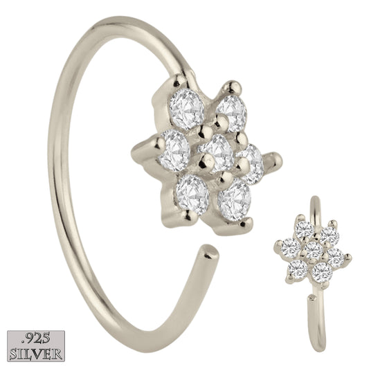 925 Sterling Silver Flower Design Nose Hoops 22g Thick 8mm wide