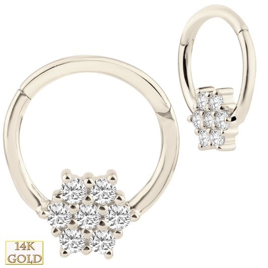 14K Solid Gold Snowflake Multi Zircon Hinged Hoop