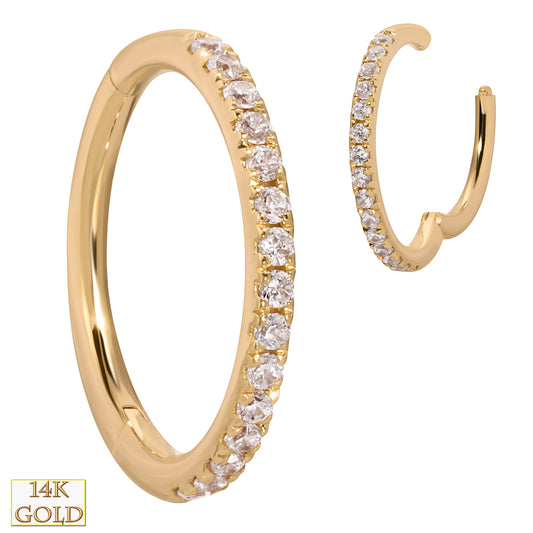14K Solid Yellow Gold Multi Zircon Hinged Hoop