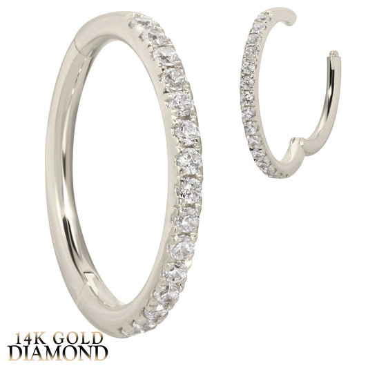 14K Solid Gold 15 stones of G/Si1 - 0.45ct Natural Diamonds Hinged Hoop