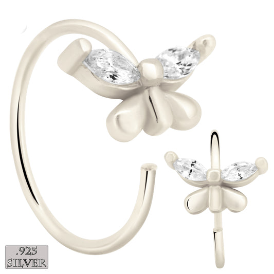 925 Sterling Silver Butterfly Design with Zircon Nose Hoops 22g Thick 8mm wide