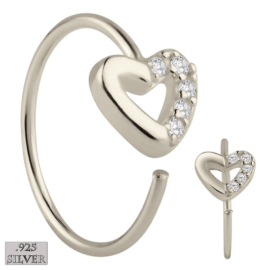 925 Sterling Silver Hollow Heart with Half Around Zircon