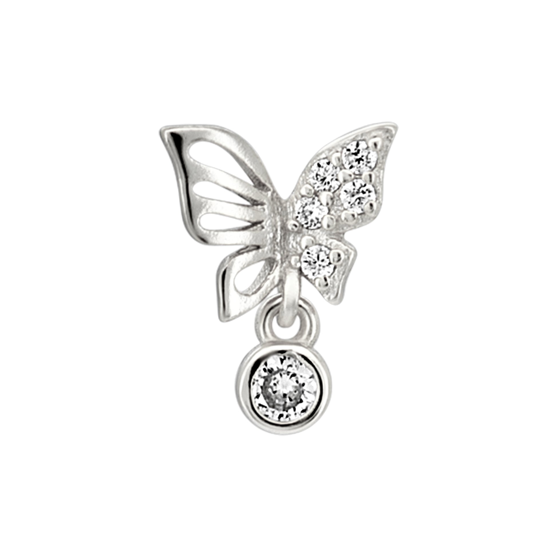 Sterling Silver Half CZ Studded Butterfly with Dangling CZ L-Shaped Nose Ring