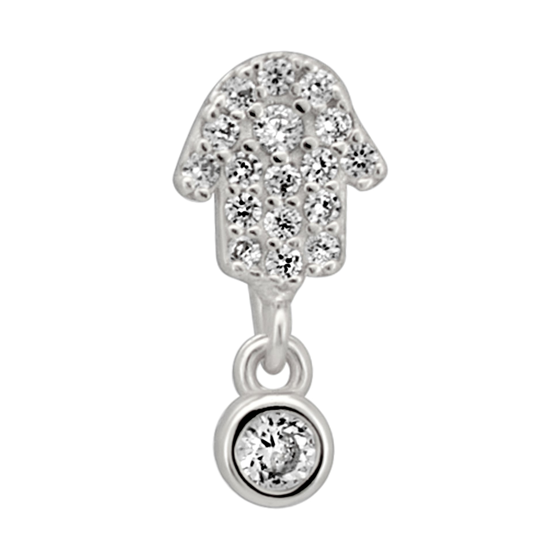 Sterling Silver Hamsa Hand with Dangling CZ L-Shaped Nose Ring