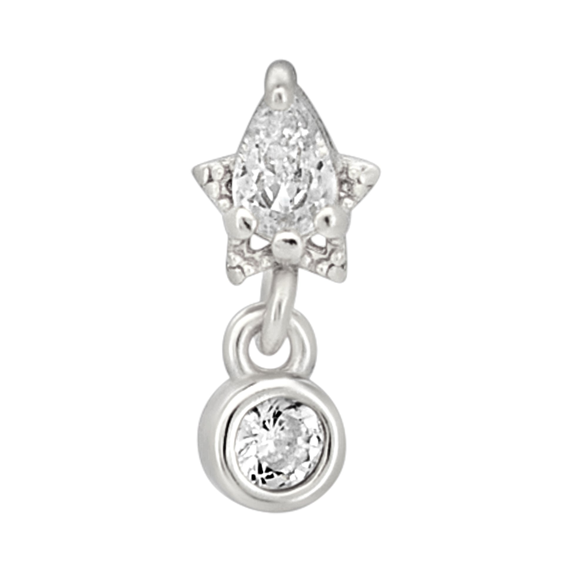 Sterling Silver Pear CZ on Star with Dangling CZ L-Shaped Nose Ring